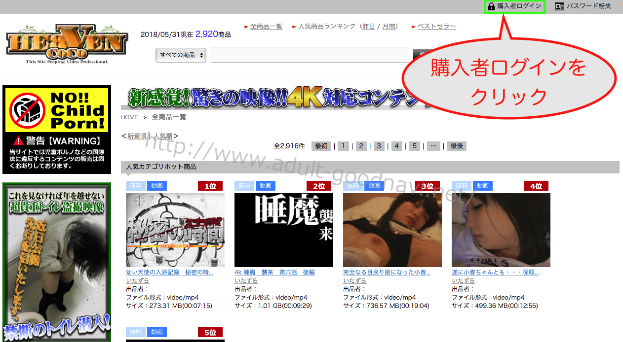 『CoCo Heaven』は、4K動画対応月額定額制の有料盗撮動画サイトです。