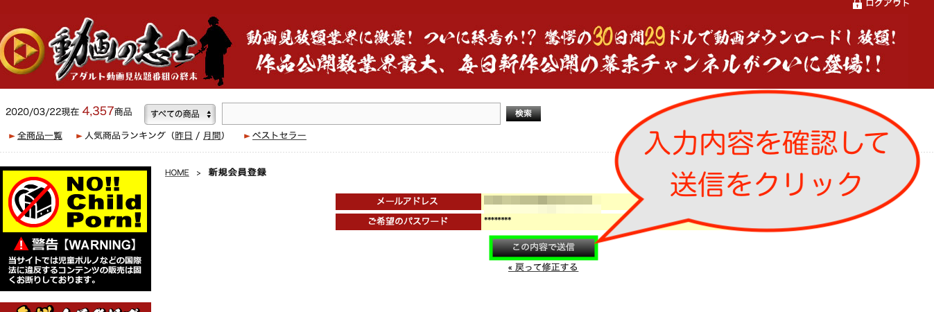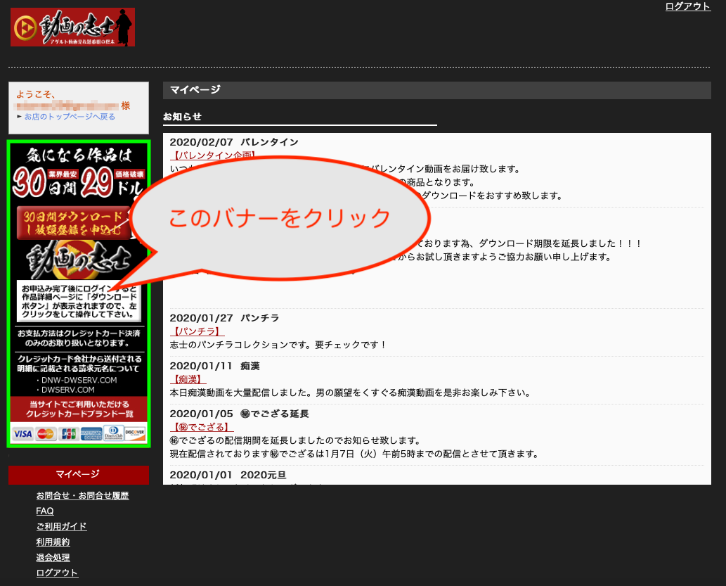 動画の志士の入会方法(クレジットカード)をご紹介します。