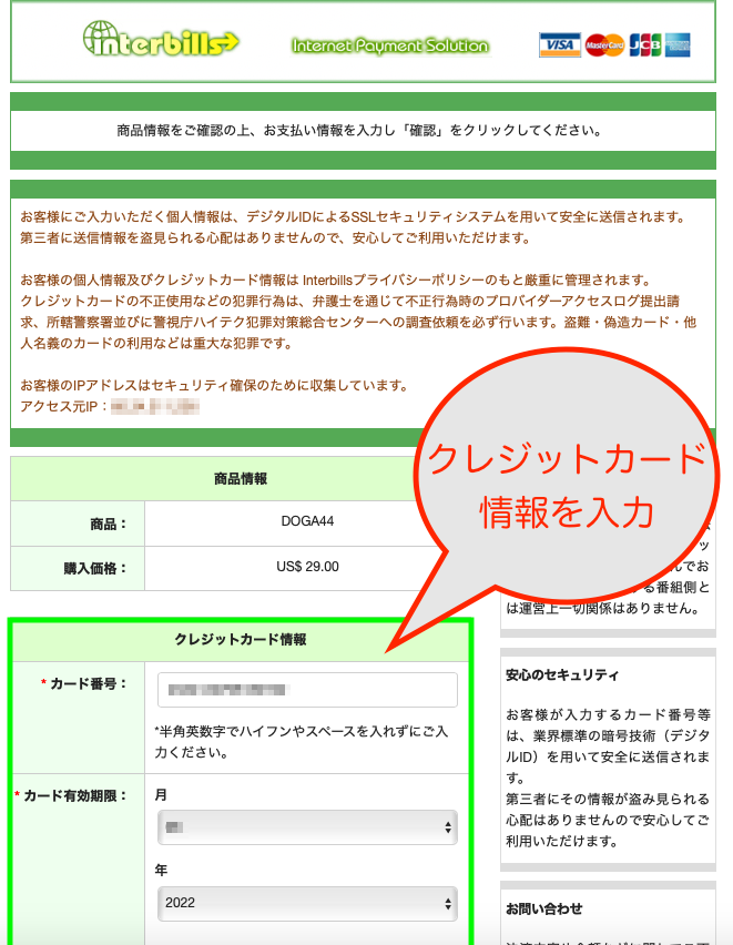 クレジットカード情報は、暗号化され送受信されるため、第三者に漏れることはありません。