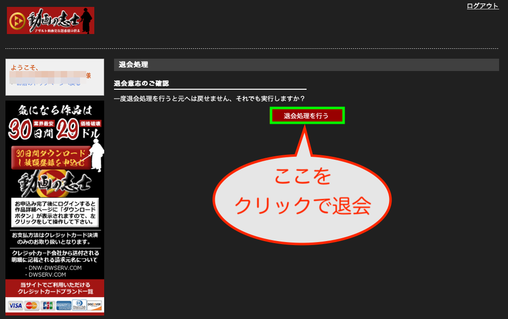 この時点で、動画の志士有料版を退会した事になります。