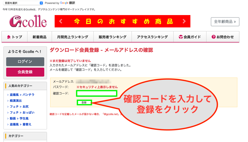 GcolleはPPV専門サイトなので会員登録状態で課金される事はありません。