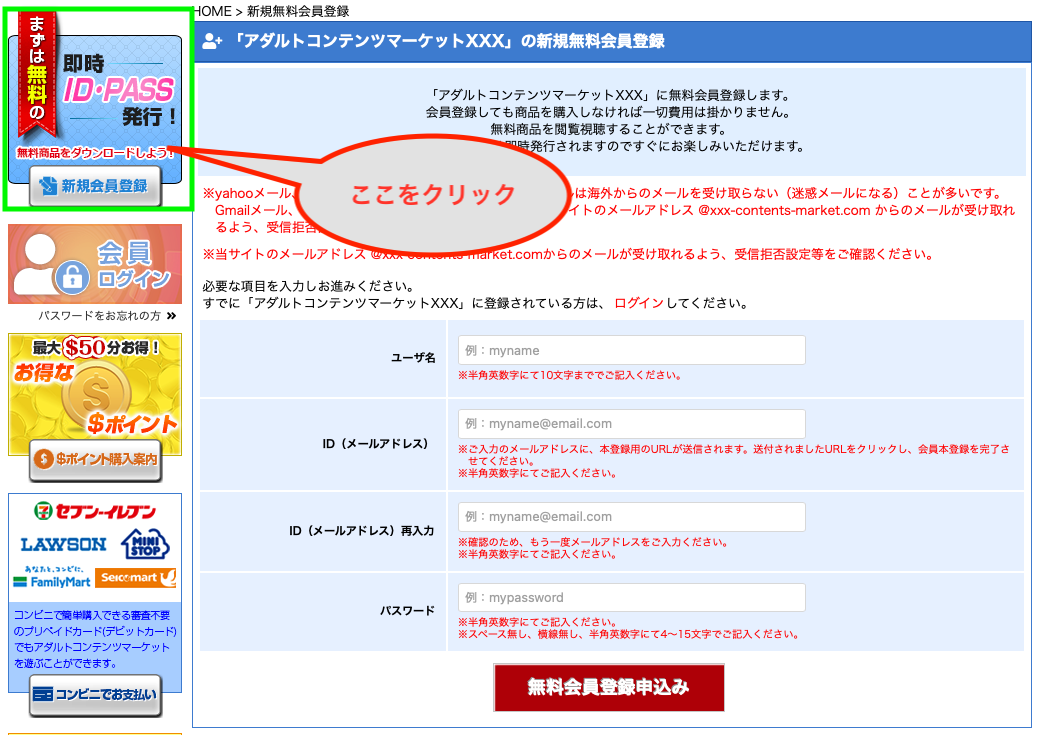 アダルトコンテンツマーケットXXXの無料会員入会方法をご紹介します。