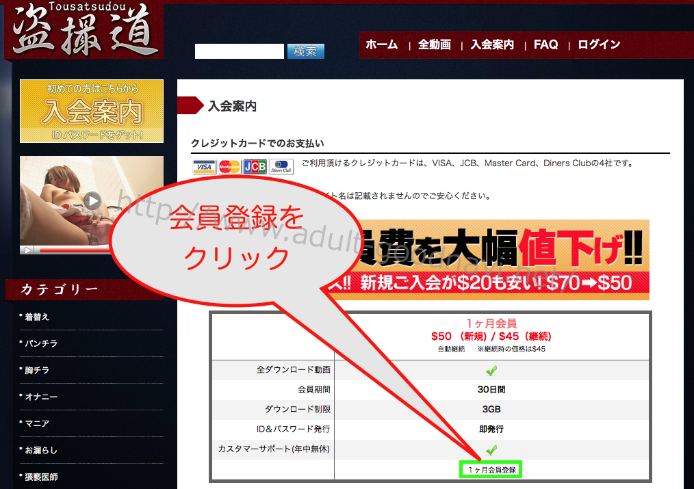 盗撮道の入会方法(クレジットカード)をご紹介します。