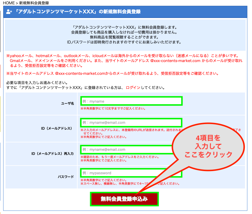アダルトコンテンツマーケットXXXの無料会員入会方法をご紹介します。